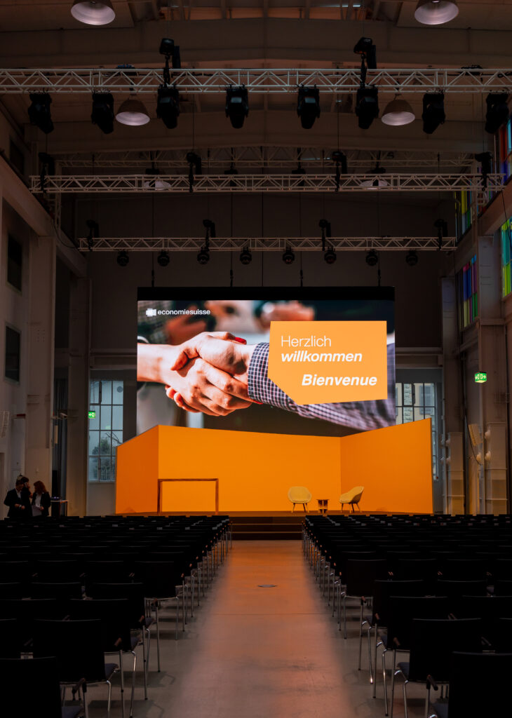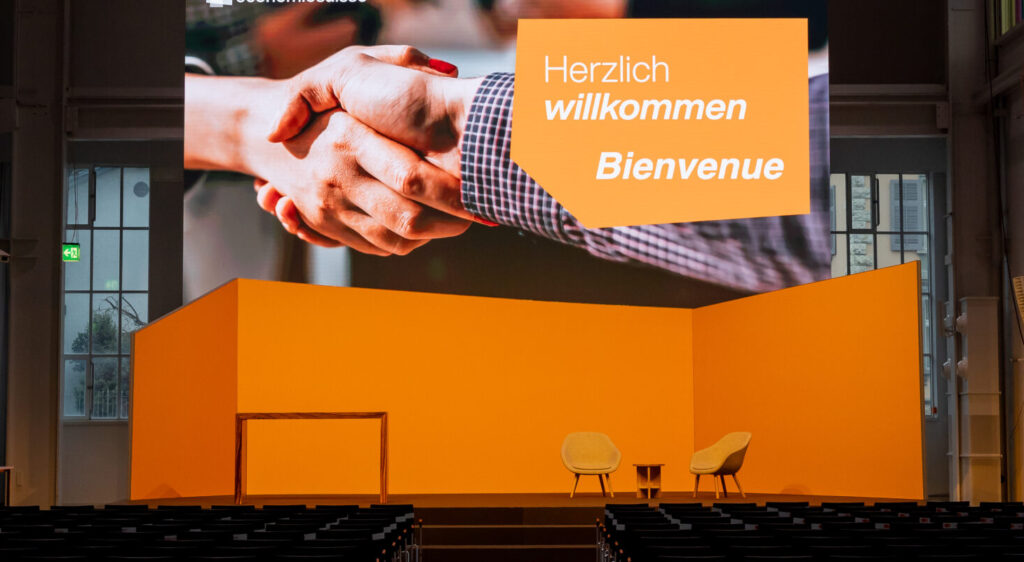 In partnership with McKinivan we had the pleasure to contribute to this year’s Tag der Wirtschaft by Economiesuisse – bringing together 400 guests from the Swiss business community. Our team was responsible for set design, full production, and supplier coordination – from catering to venue logistics.